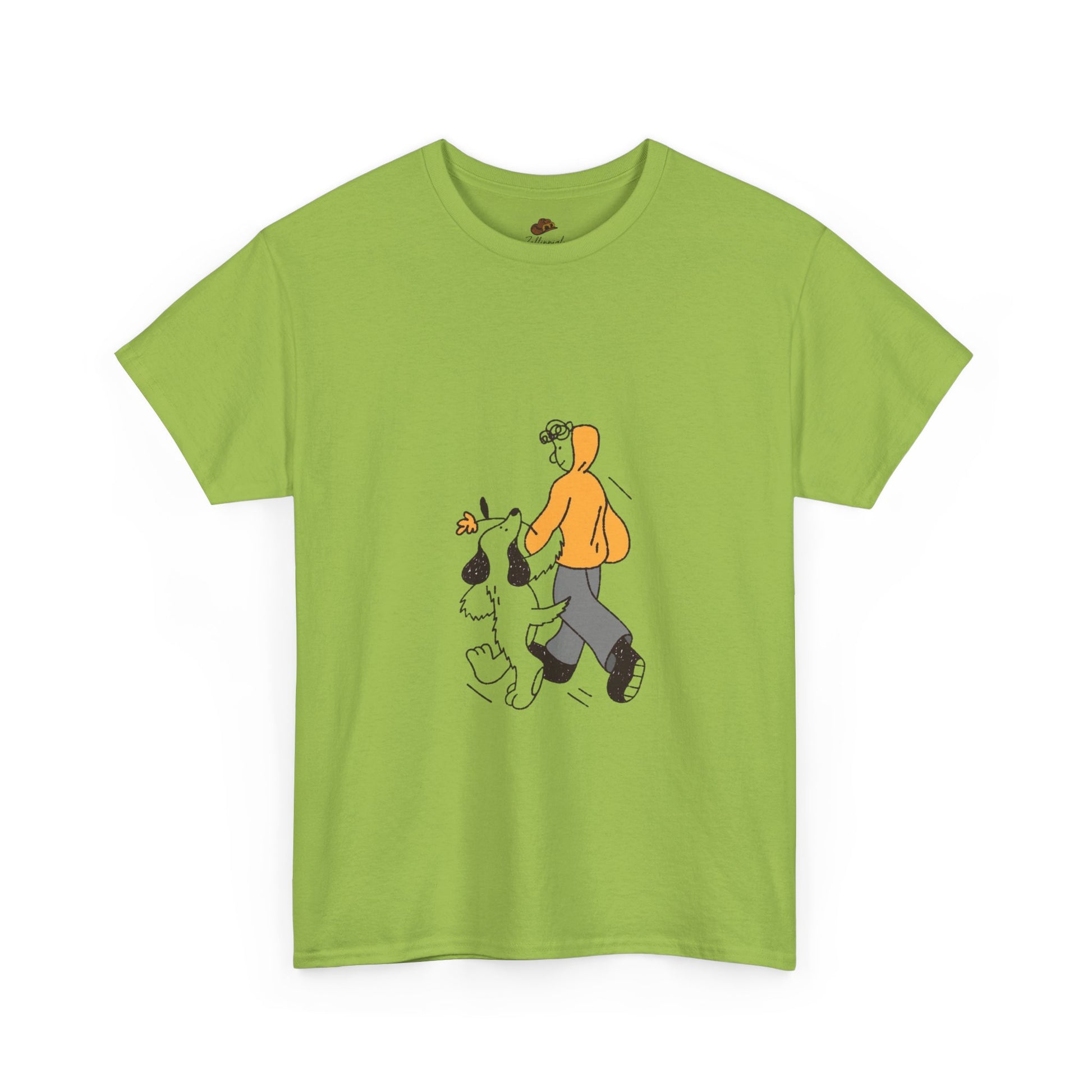 Casual Graphic T-Shirt for Dog Lovers, Cute Pet Walk Tee, Unisex Apparel, Gift for Animal Lovers, Everyday Wear