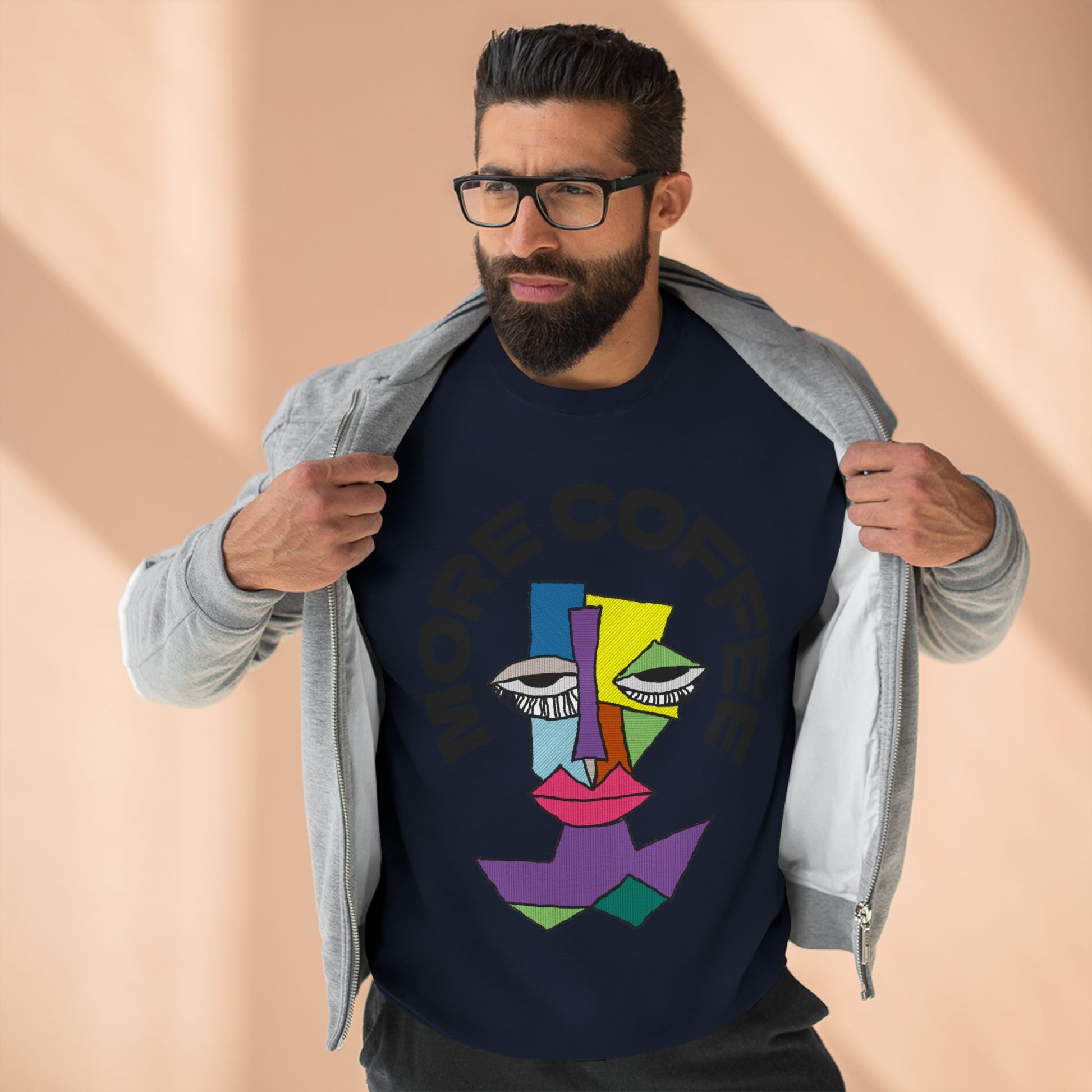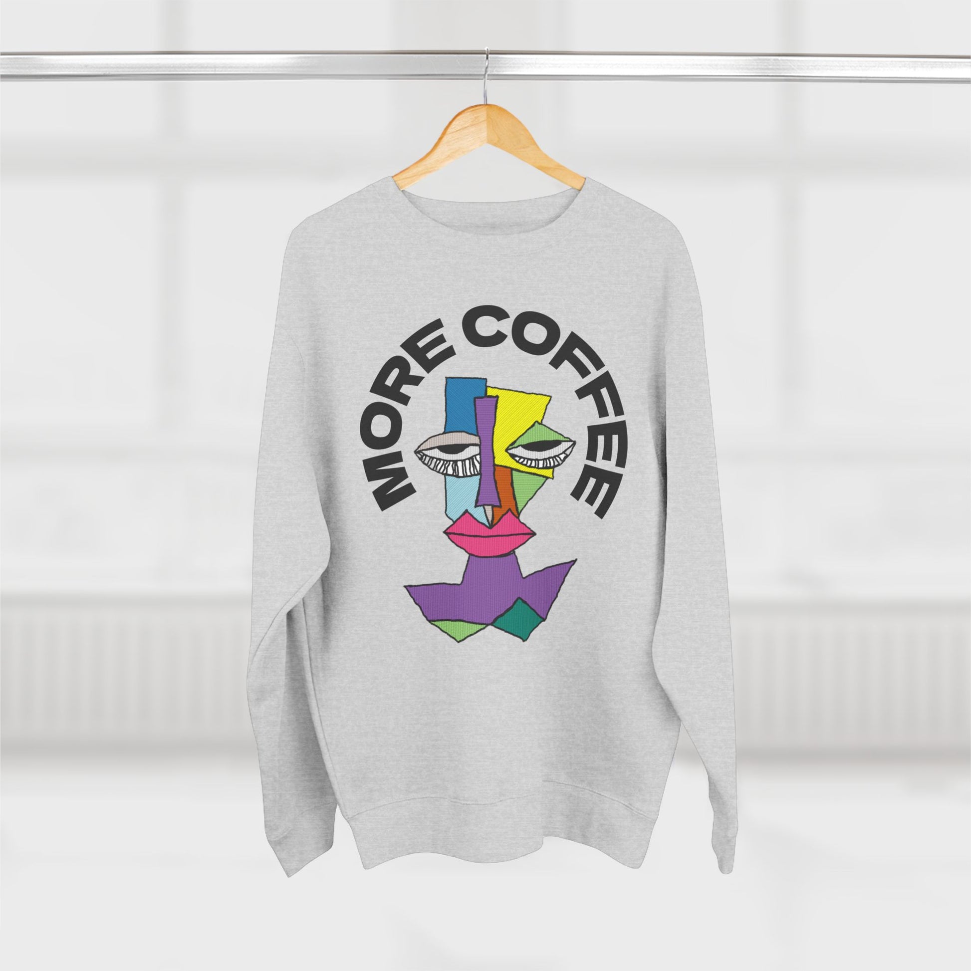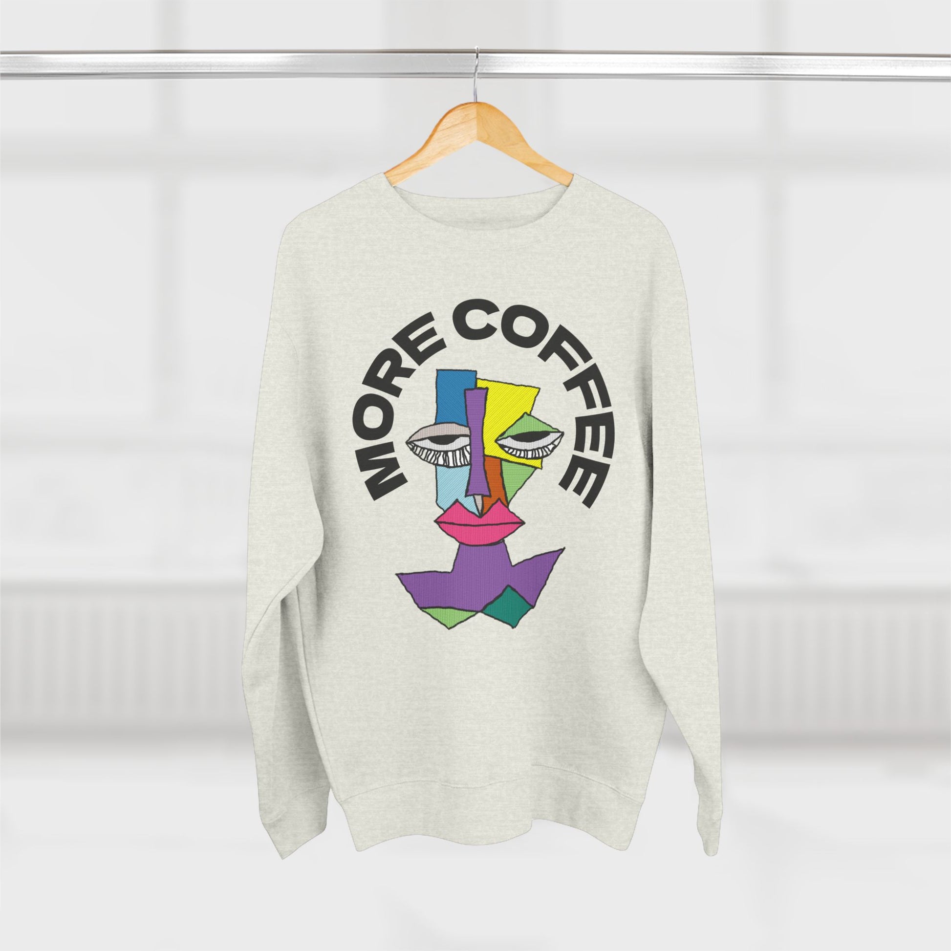 Stay cozy and relaxed with this unisex crewneck sweatshirt featuring a sleepy character diagram and the words 'More Coffee'. Perfect for lounging around the house or running errands on a lazy day. Ideal for coffee lovers or anyone who enjoys a good nap. Great for casual wear during fall and winter seasons.