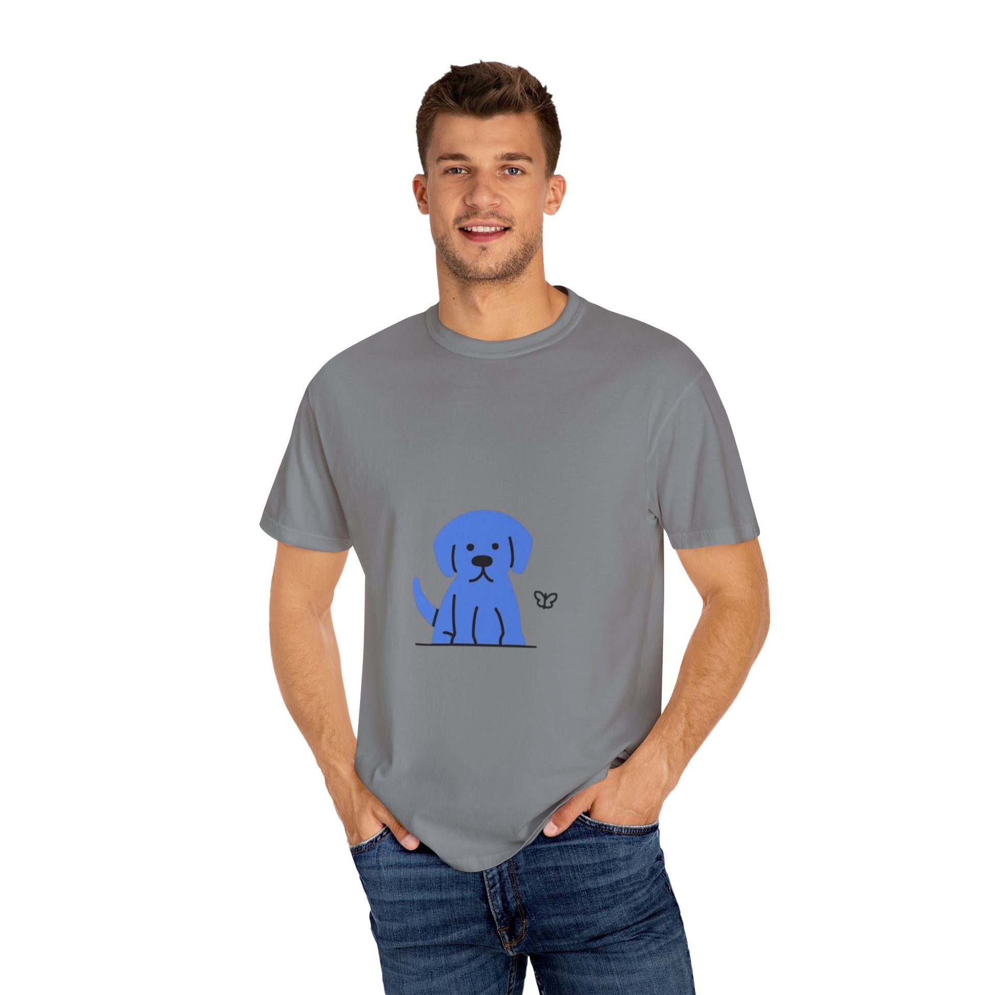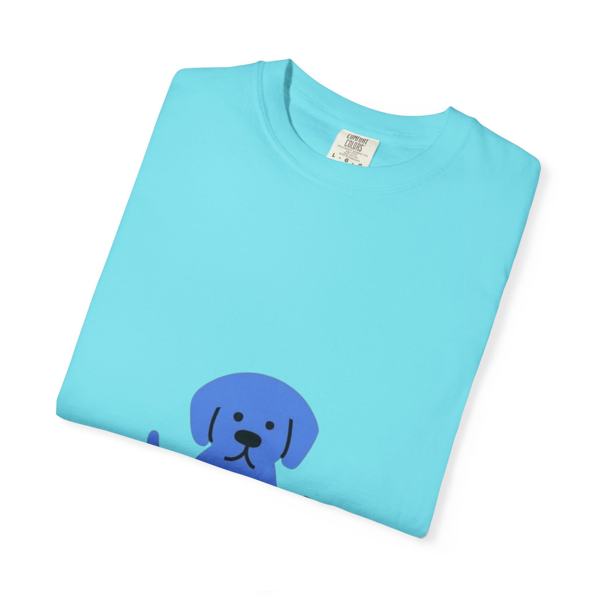 Cute Blue Dog Unisex Garment-Dyed T-shirt, Pet Lover Gift, Fashion Tee, Casual Wear, Birthday Present, Dog Lover Apparel