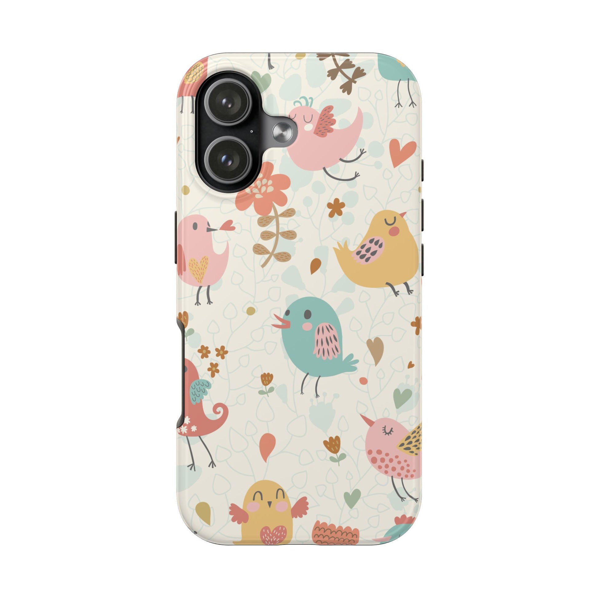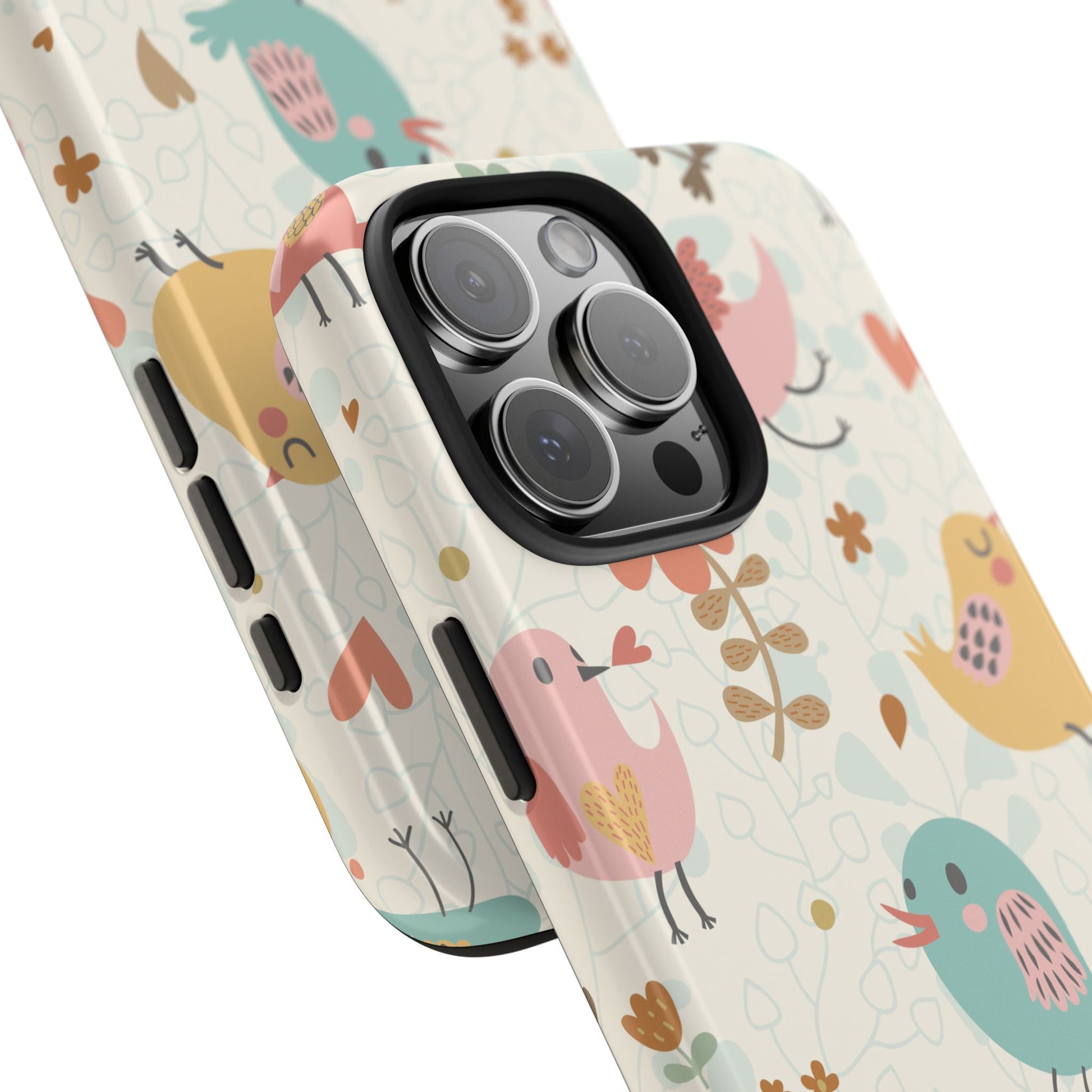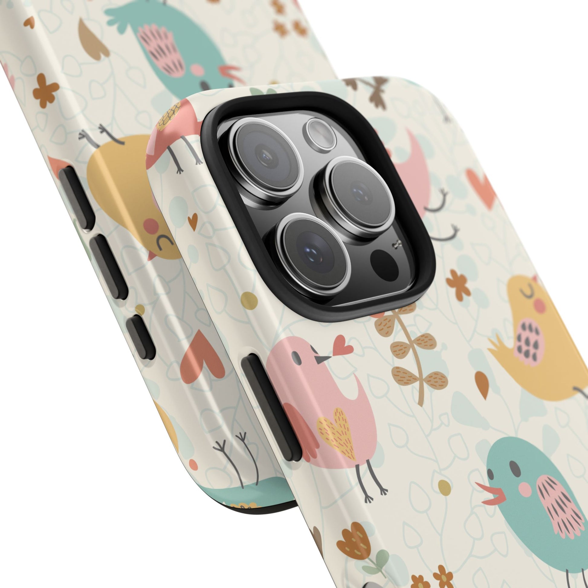 Cute Cartoon Birds Phone Case for iPhone 15 Pro with Colorful Pastel Floral Pattern โ Soft Protective Cover with Whimsical Bird Design