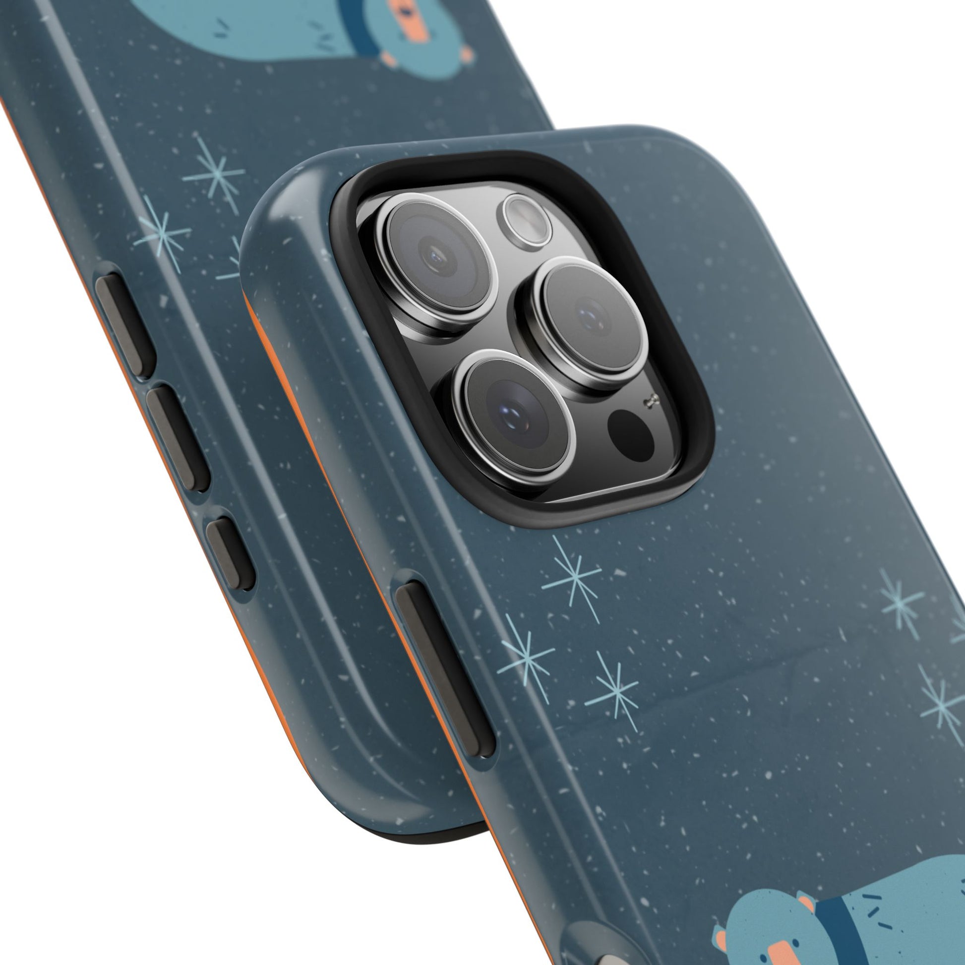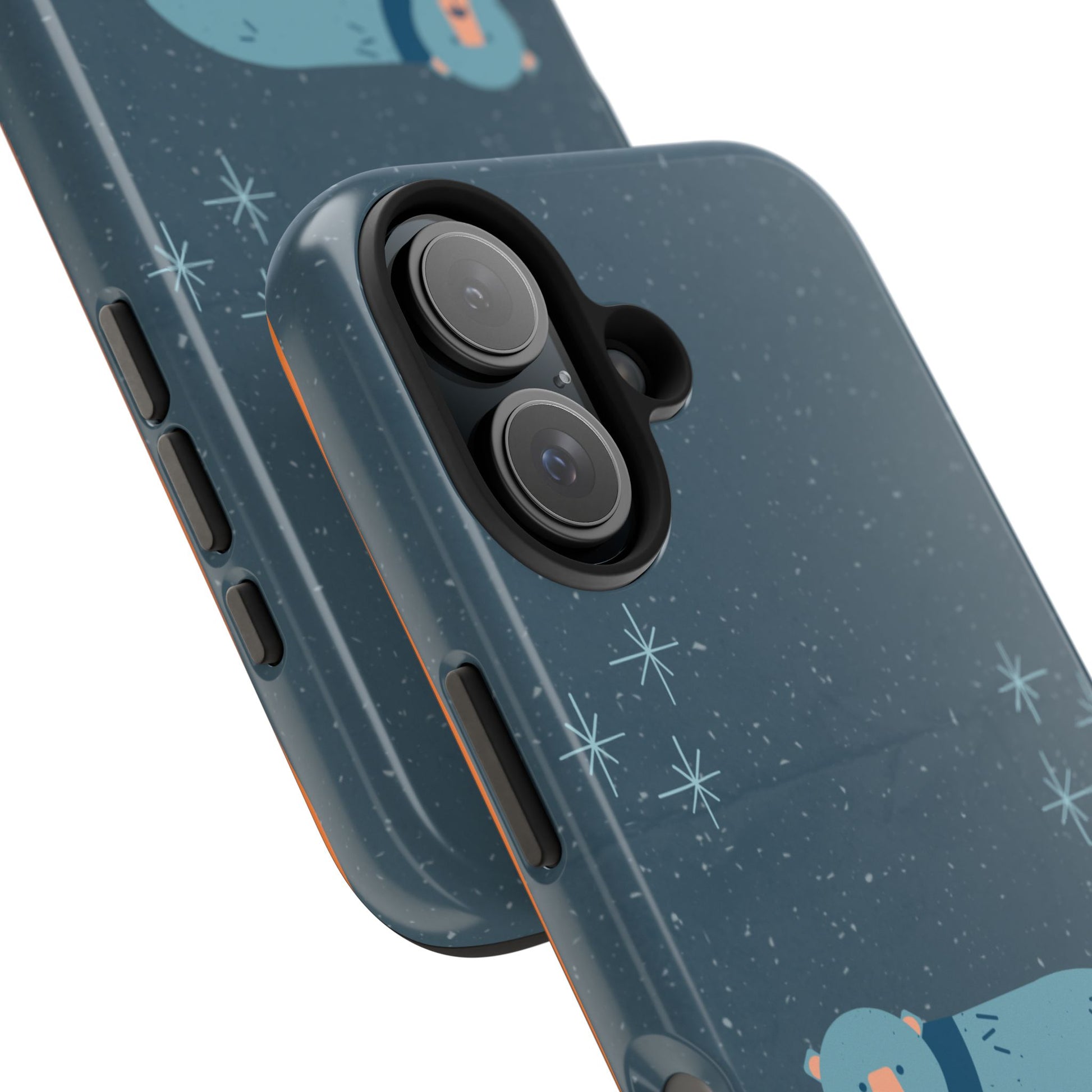 Cute Winter Bear Phone Case with Scarf and Snowy Night Background Cozy Animal Design Protective Cover for Holiday and Cold Weather Vibes