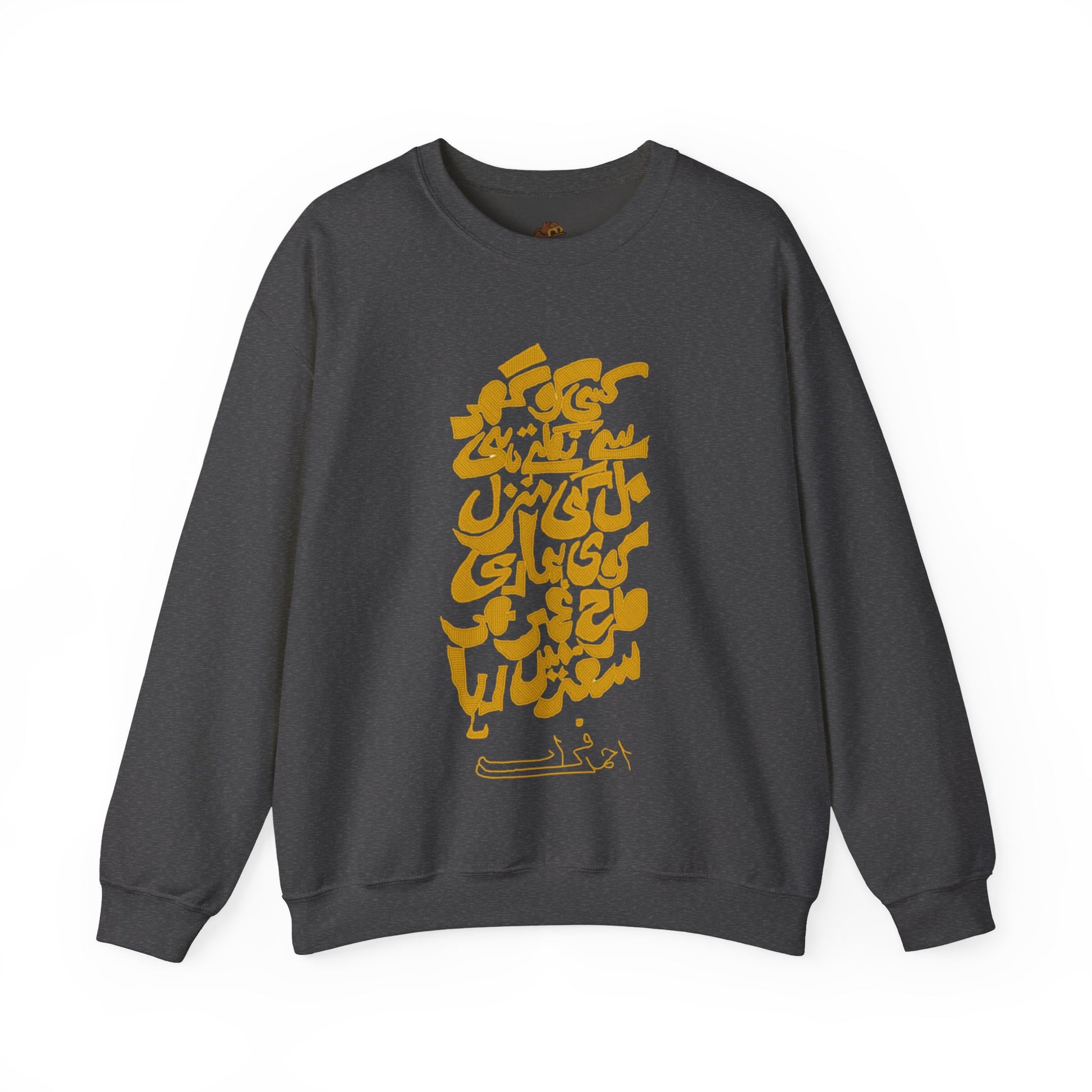 Urdu Poetry Calligraphy, Travel Gift, Unisex Crew, Comfy Casual Wear, Perfect for Litrary Enthusiasts,