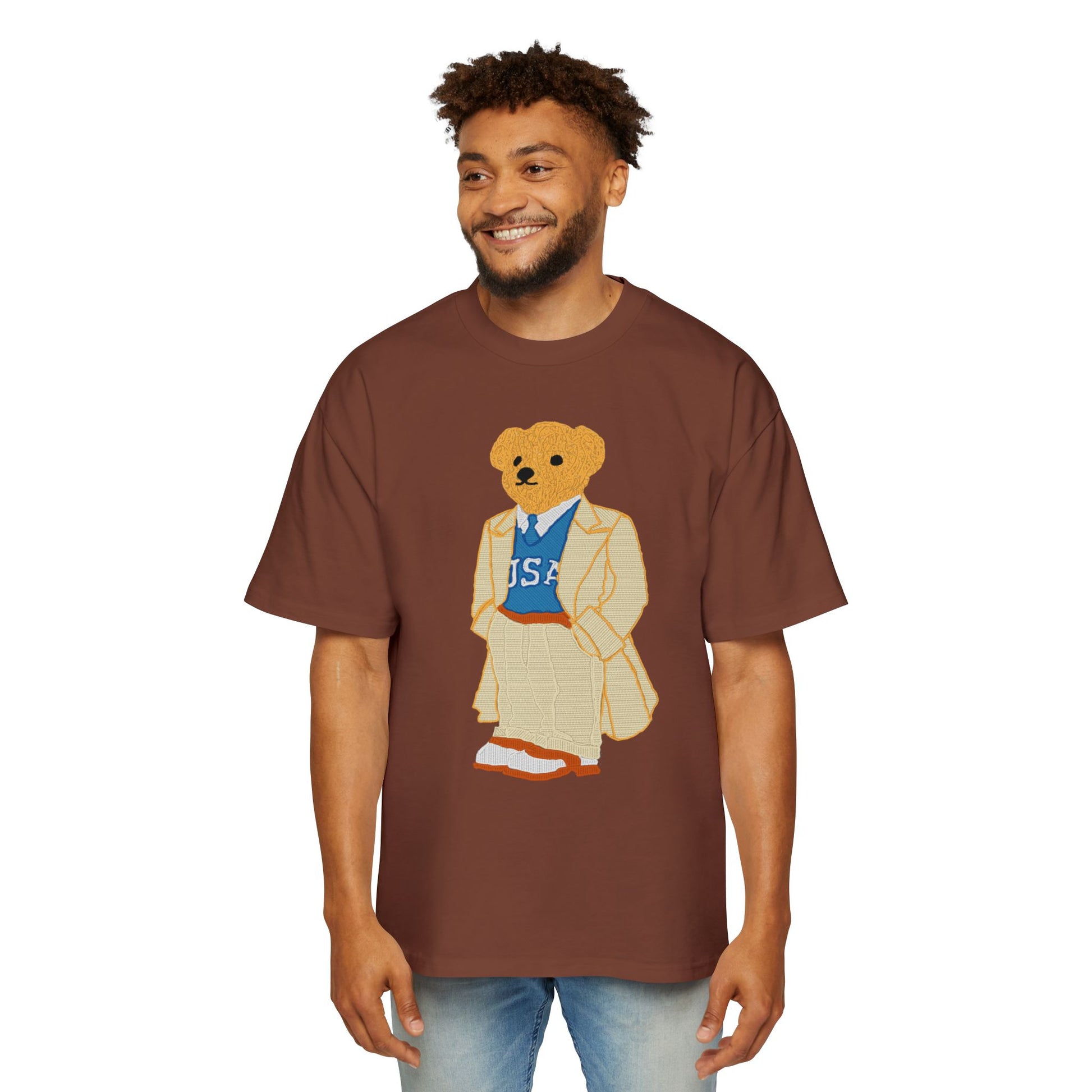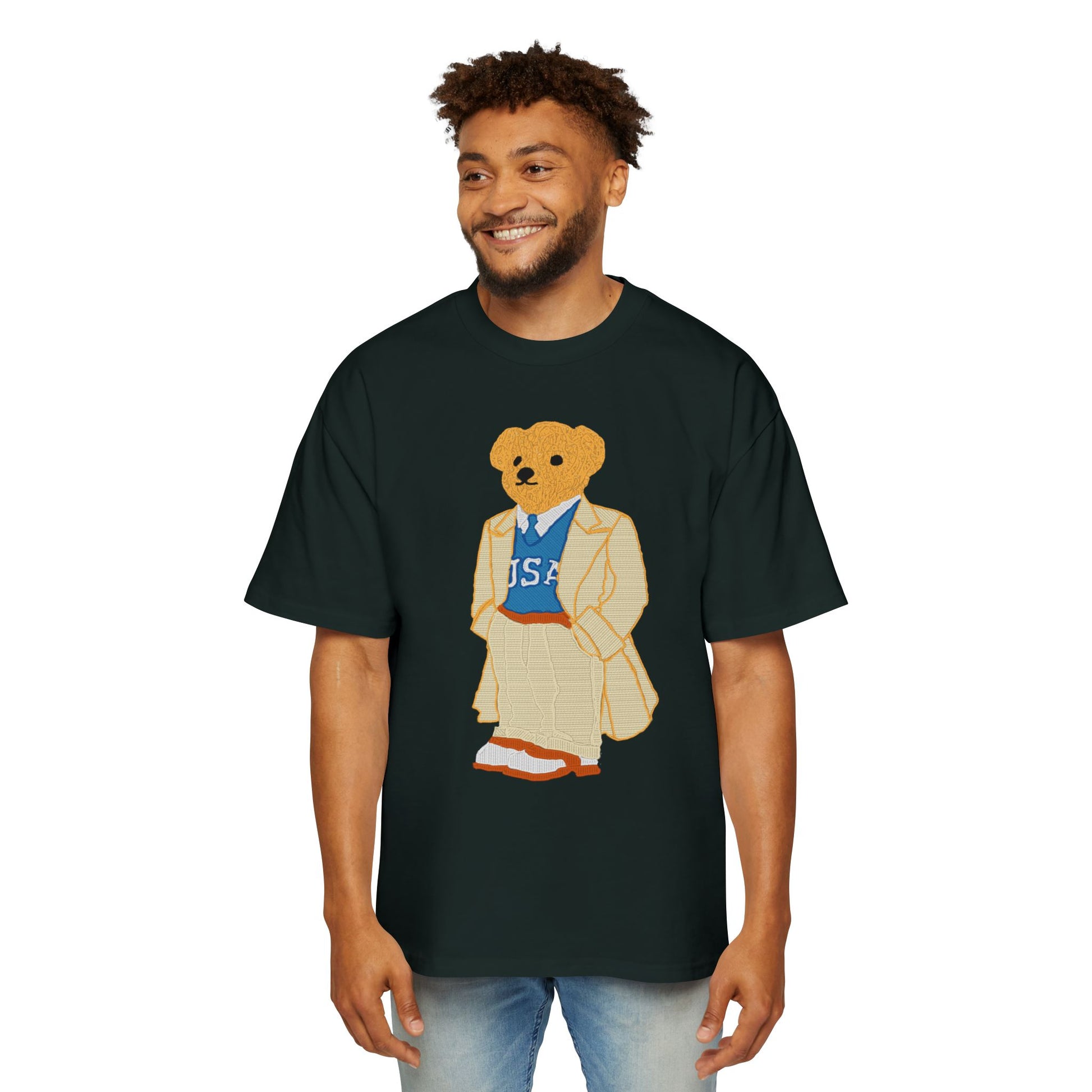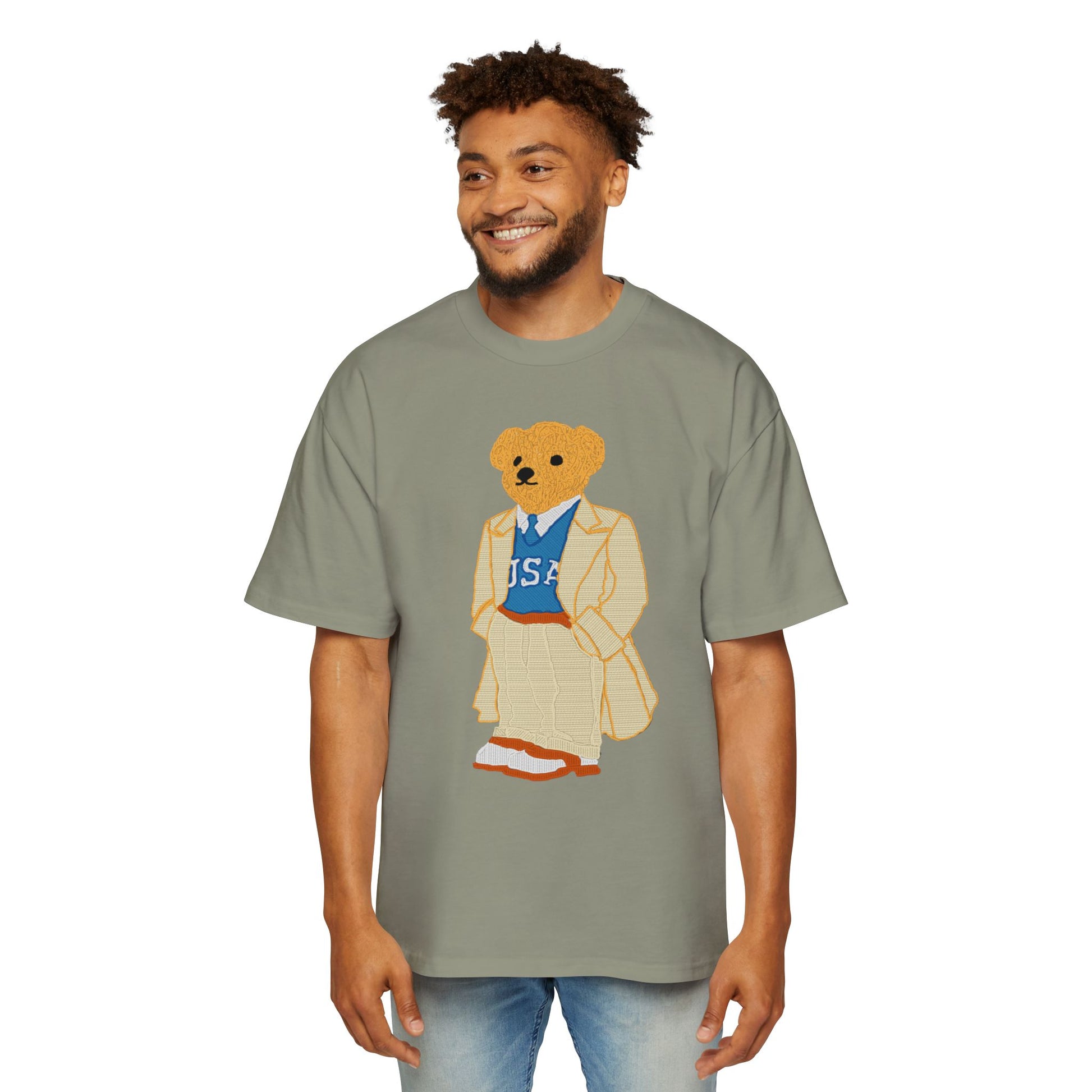 USA Bear Graphic Premium Oversized Tee, Casual Streetwear Shirt, Vintage Style Men's T-Shirt, Funky Bear Tee, Summer Fashion Top